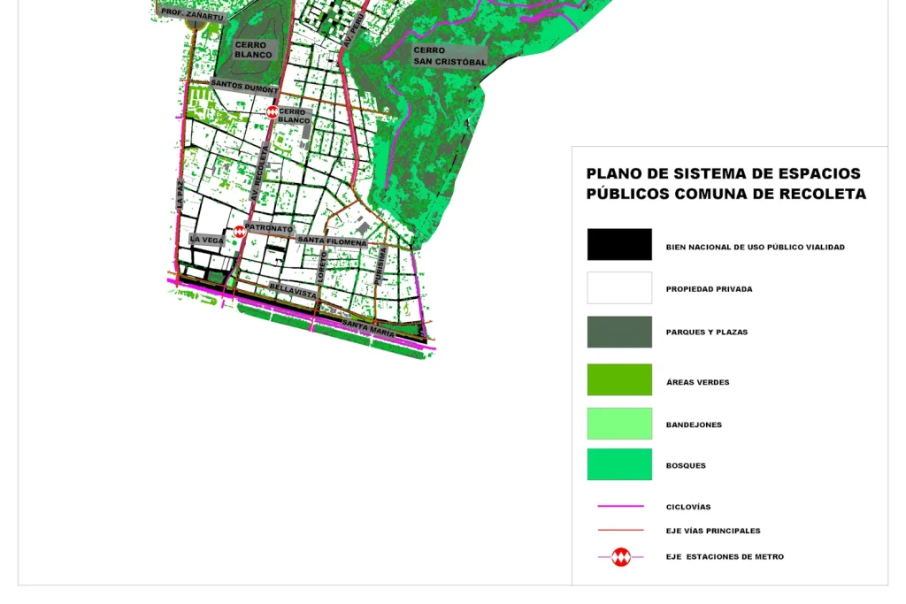 Estudio realizado entre los años 2016 y 2025, junto con Ámbito Consultores para la Municipalidad de Recoleta, que consideró la planificación urbana e Imagen Objetivo, la evaluación ambiental estratégica, la Consulta Pública del Informe Ambiental y su Anteproyecto y los Estudios especiales. En este Plan destaca la propuesta de infraestructura verde integrada por el Parque Metropolitano, el Cerro Blanco y otras verdes locales potenciando los corredores ecológicos entre cerros y el equipamiento de cementerio.